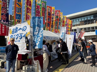 松浦市はアジフライや元寇グッズなどを販売し、全国から観戦に来られるお客様に
